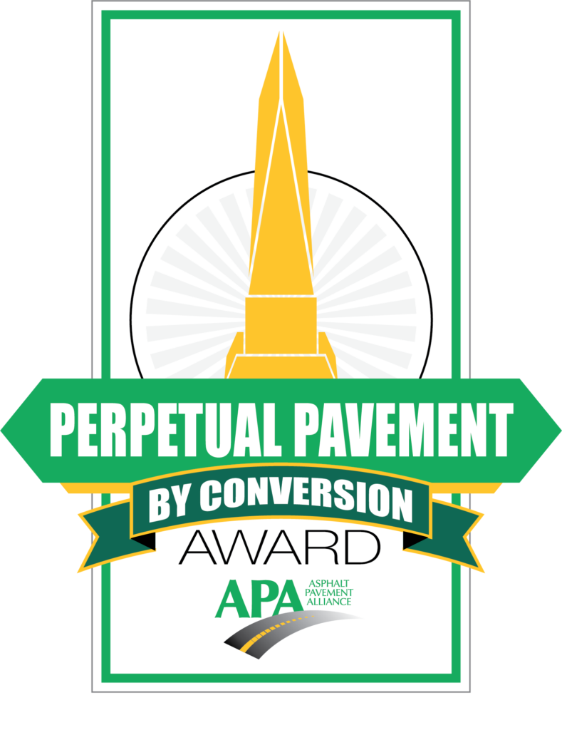 Perpetual Pavement: By Conversion honors agencies that demonstrate outstanding design and construction practices, specifically through constructing new asphalt roads over existing roadways.